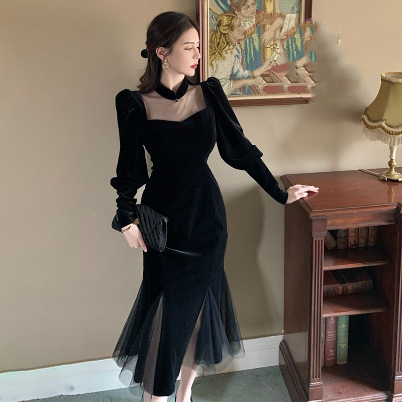 Mesh Stitching Dress Women's Long Sleeve Stitching Skirt